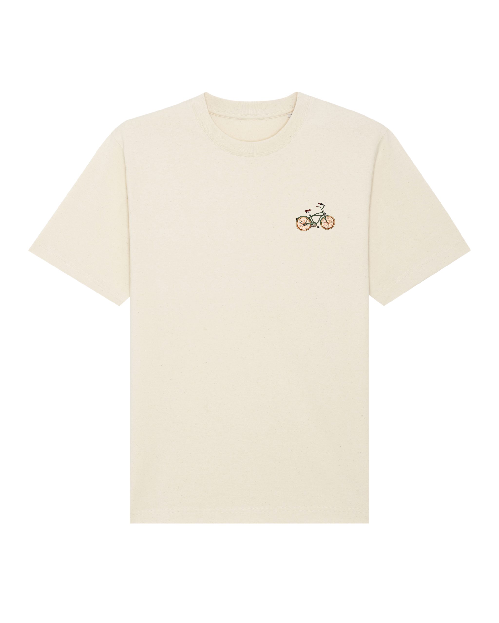 Hola, soy la camiseta Bici Isnach. Relaxed fit, 240g de algodón orgánico y una historia que pedalea directo al corazón del streetwear.
