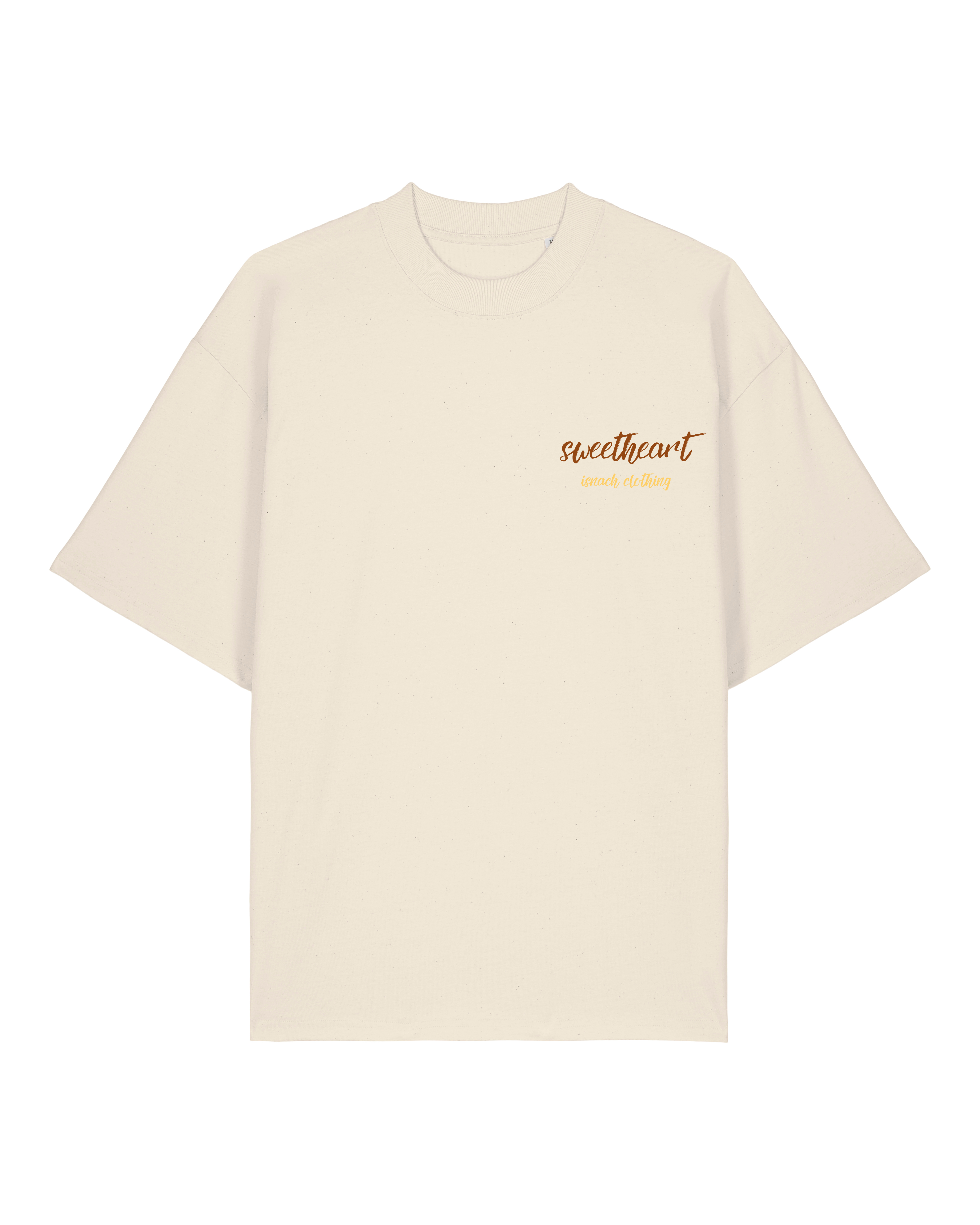 Hola, soy la camiseta oversized “Sweetheart” y estoy aquí para endulzar tu outfit con flow y un corazón tan crujiente como un palmerón recién hecho.